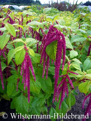 Heute ist er weltweit verbreitet. Dieser Amarant wird als Körnerfrucht auch im Himalaya angebaut. Doie Blütenstände sind dichtbebsetzte, spitz zulaufende ähren, die herunter hängen.