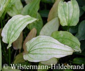 etwa 60 cm hoch und 40 cm breit. Die Blattstiele erreichen eine Länge bis zu 30 cm. Die Spreiten sind zwischen 11 und 23 cm